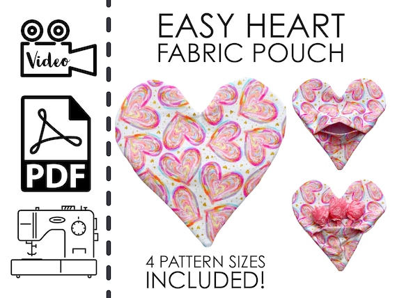 Easy Fabric Heart Pouch Sewing Pattern Video Tutorial Etsy